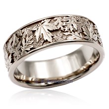 Narrow Oak And Maple Leaf Eternity Wedding Band