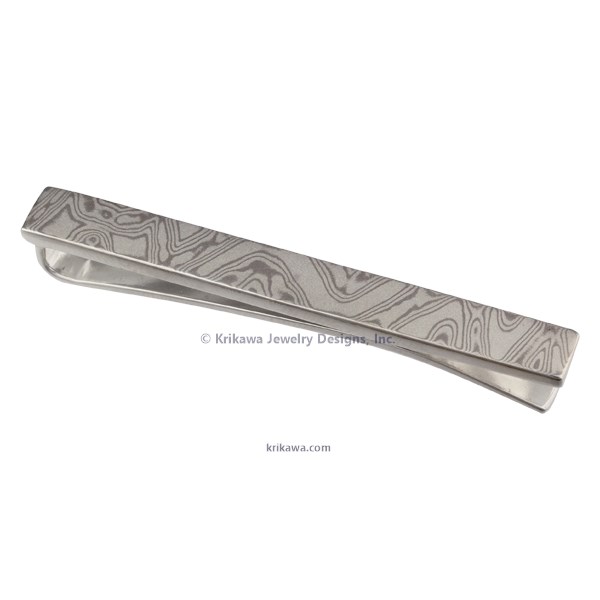 This unique tie bar is made to order with your choice of metal clip and mokume gane. This is an amazing gift for a man!