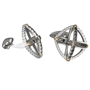 Gorgeous platinum cuff links with 1.62 carats of white and black diamonds, with 24k gold and single red diamond accents.