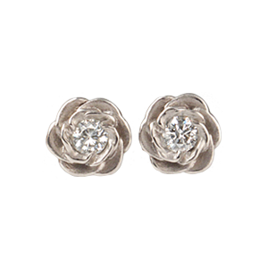These 7mm wide rose earrings studs sparkle with 3mm diamonds or the gemstones of your choice. Just like there are many colored roses, these organic earrings can be ordered in many different colored metals! 1/5 carat total weight.