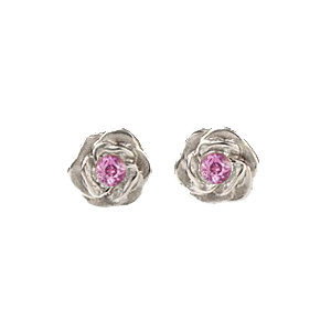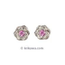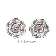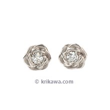 These 5mm wide rose earrings studs sparkle with 2mm diamonds or gemstones. Just like there are many colored roses, these organic earrings can be ordered in many different colored metals! 0.06ctw.