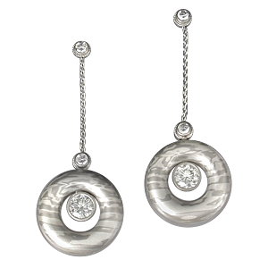 These gorgeous earrings feature Summer mokume with a heavy etch and white diamonds set in 18K yellow gold.