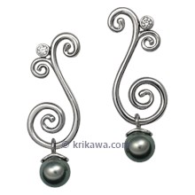 This elegant necklace combines a flash of brilliance with a 0.40 ct diamond and a stunning naturally colored black Tahitian cultured pearl. Fanciful curls are joined with delicate chain making this design flattering for everyone. Shown in platinum. 16" length.