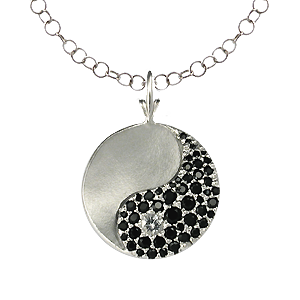Taoism's Yin-Yang symbol represents the balance of opposites in the world. When opposites are equally present, then all is calm. When one outweighs the other, then there is confusion. We have balanced the two sided symbol with equal proportions of black spinel and white rock crystal.