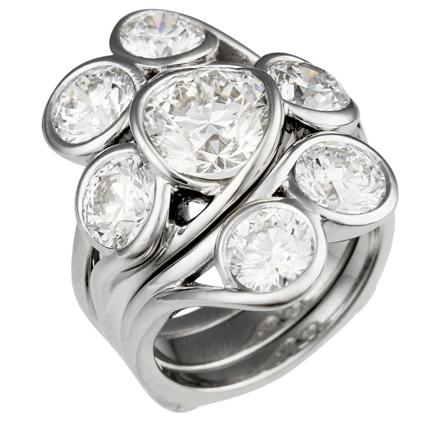 This unique bubble style engagement ring wrap will compliment many bezel set solitaire styles. Choose your favorite precious metal and white or colored stones to customize this ring especially for your sweetheart!