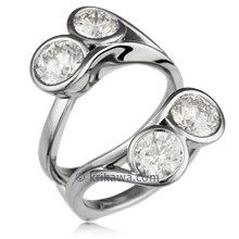 The Bubble Wave Engagement Ring bridal set features a classic three stone engagement ring that easily slides within the enhancer to create a luxurious set showcasing an amazing 7 various sized large round stones. Stones are bezel set to flow like waves around the center ring. Shown here in platinum with 7 GIA certified diamonds.*Pricing below is for the Bubble Wave Enhancer ring only. All stones are priced separately. Bubble Wave engagement ring is priced separately.