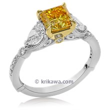 Shown in 18k yellow gold with oval cut 2-carat lab-grown diamond and two pear-shaped lab-diamonds.