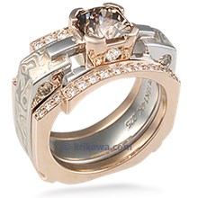 Shown in Platinum and 10k green gold with Champagne Mokume and 1-carat diamond.