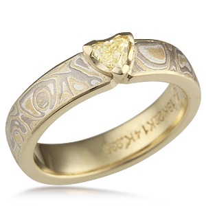 Baby Trillion Mokume Engagement Ring with Orange Diamond