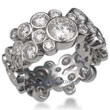 The Bubble Diamond Engagement Ring is a celebration of joy, energy, and expressive style. Bezel set diamonds float across the band in clustered brilliance, creating a sense of movement that feels both playful and refined. Light flows through the prong-set center stone, giving it a spotlight-worthy glow from every angle.