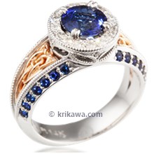 Inspired by Celtic folklore, this engagement ring resembles the journey and adventures ahead. A Celtic knot swirls along the band, twisting into a unique halo. Focusing on the forged metals and goldsmith techniques, the knot surrounds a delicate sapphire. A ring fit for the gods, celebrate your adventure with this unique engagement ring.Shown in 14k yellow gold with a 2mm sapphire.