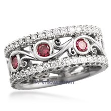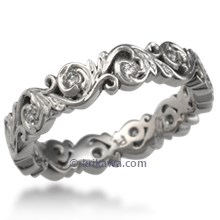 Carved Curls Wedding Band with Yellow Gold Rails and Emeralds