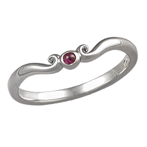 This custom Carved Mini Curls Wedding Band was made in 18k yellow gold and set with a round ruby. It is a simple yet artistic ring.