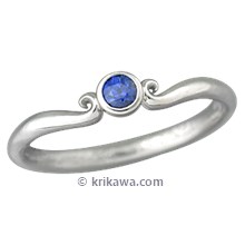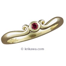 Carved Mini Curls Wedding Band with Ruby Cabochon