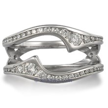 The Carved Wave Light Engagement Ring with Diamonds captures the serenity of the sea in a delicate, sculptural form. Gentle wave patterns wrap around the band, each one hand-carved to suggest motion and flow. Sparkling accent diamonds are set along the curves, catching the light like reflections on water.