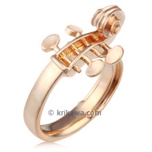 This ring takes its artistic form from the neck and head stock of a cello. The curling scrollwork on the head is exactly to proportion. This is the perfect ring for your bowed instrument lover.- Choose your metal in the dropdown below for pricing and colorizing