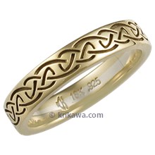 Our exquisite wedding band is adorned with a Celtic knot-inspired pattern. This timeless design showcases intricately etched motifs that beautifully intertwine, symbolizing unity and eternal love. Crafted with meticulous attention to detail, this band serves as a testament to the rich heritage and symbolism of Celtic traditions. You can personalize this remarkable piece by customizing it in your preferred metal tones.Shown in 14k white gold.