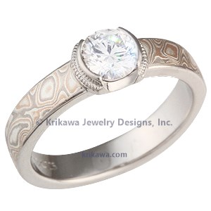 Champagne Mokume Millegrained Solitaire Engagement Ring