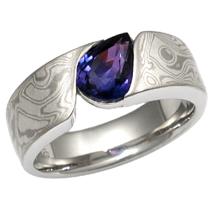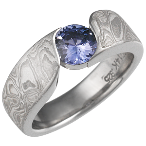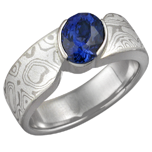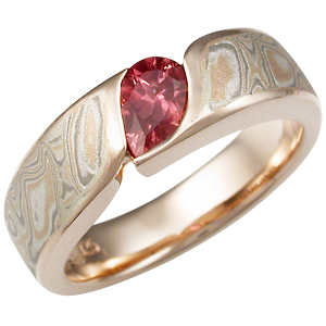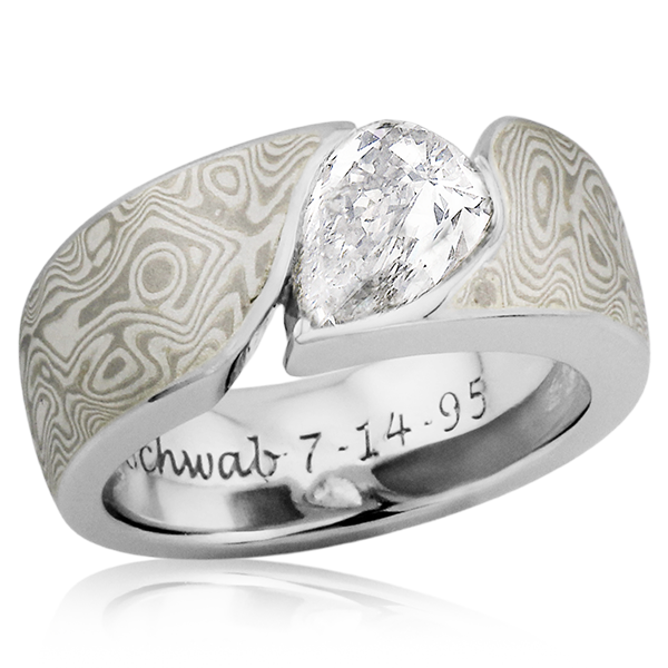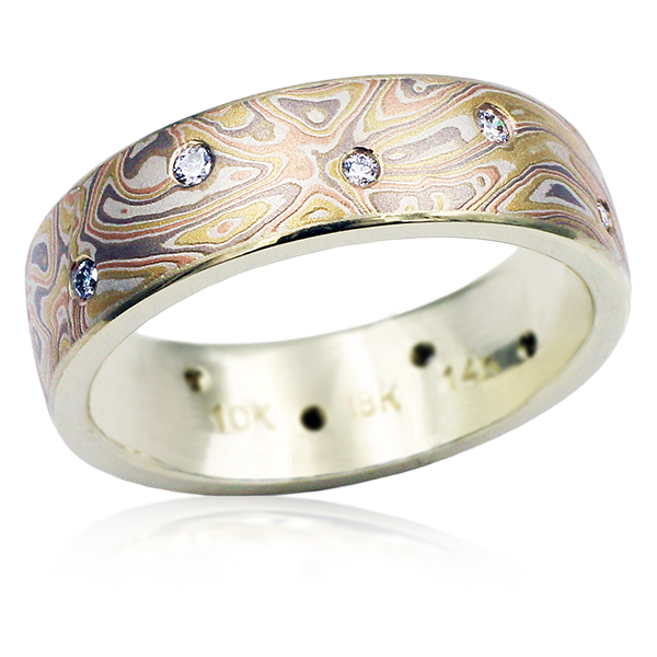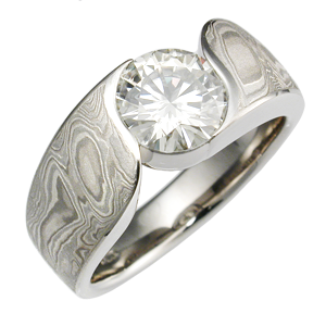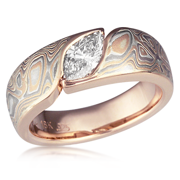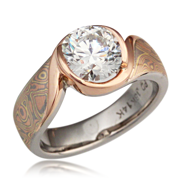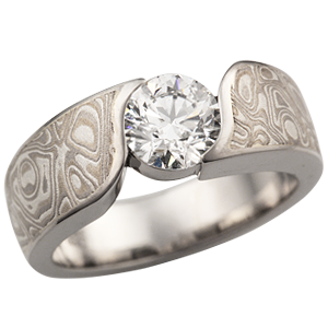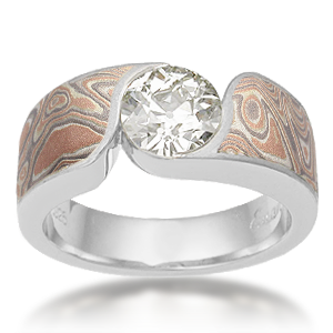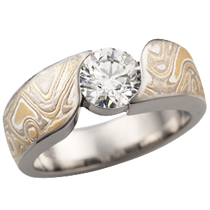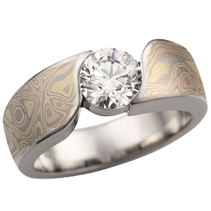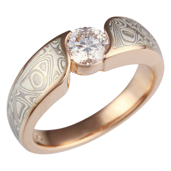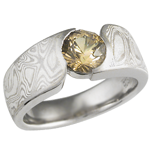 Champagne Mokume Wave Engagement Ring with Cognac Diamond