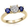 Shown in 18k yellow gold with a 0.95ct lab diamond center stone and 0.71ct lab sapphire side stones.