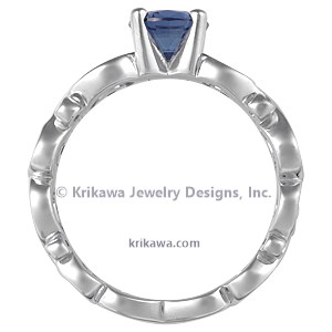 This custom engagement ring has a blue sapphire.