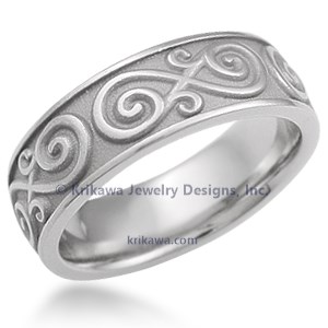 This eternity symbol wedding ring features our unique curly infinity symbol around the band. Consider this band for the groom and the matching Ornate Infinity Wedding Band for the bride.