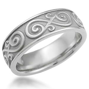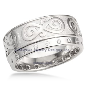 This wedding band is two rings in one! Alongside our eternity-style contemporary infinity wedding band is a flush-diamond band.