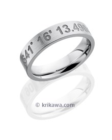 This ring allows you to have coordinates that are important to you engraved around the outside of the band.