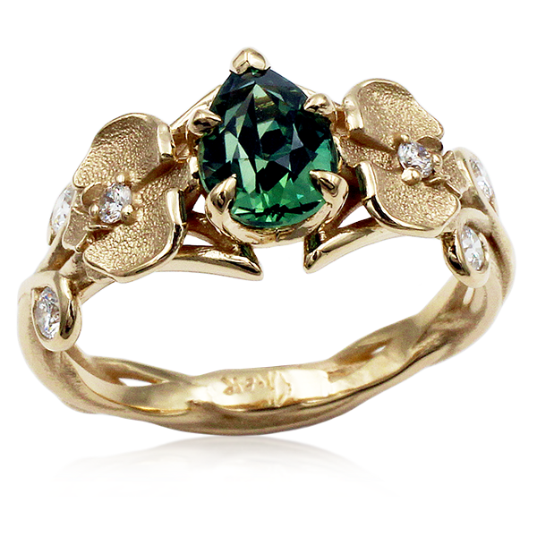 Surprise your loved one with a unique and stunning engagement ring that will make their heart skip a beat! Our orchid flower engagement ring features twisted strands carrying dollops of diamonds. Hand-hammered details create a realistic texture in the fully bloomed-orchids. Angled prongs elevate the center stone of your dreams. *Actual palm width 2.5mmShown in 14k rose gold with a 1.5ct lab-made champagne sapphire.