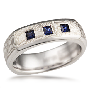 Cushion Shaped Mokume Band with Beveled Edges