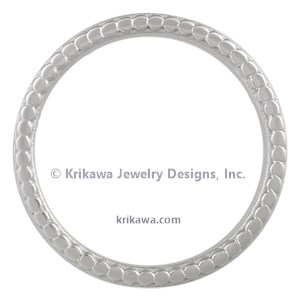This sleek wedding band is uniquely detailed with a small cylinder pattern carved around the outside edges of the ring. A beautiful, classic design with vintage detail. Make this ring your own by selecting your favorite metal!