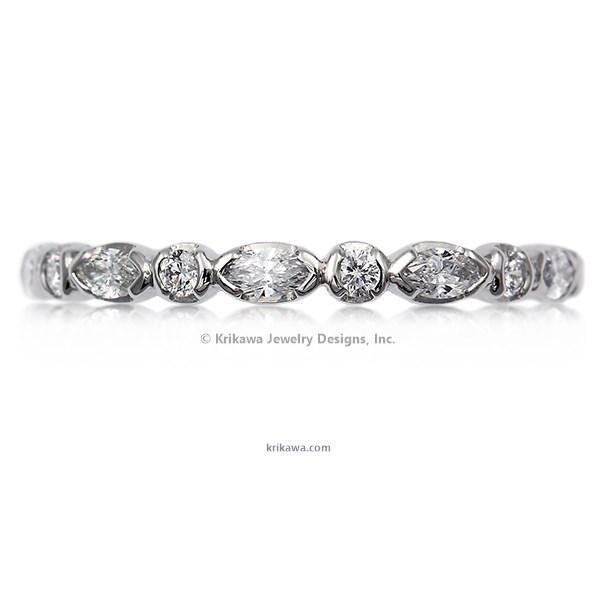 This graceful wedding band design features brilliant diamonds in alternating shapes of marquise and round cuts. An elevated, modern take on the traditional diamond eternity wedding band style. Handcrafted in your choice of precious metal, the possibilities for customization are endless. Choose your favorite diamond or gemstones to create your prefect ring.