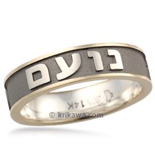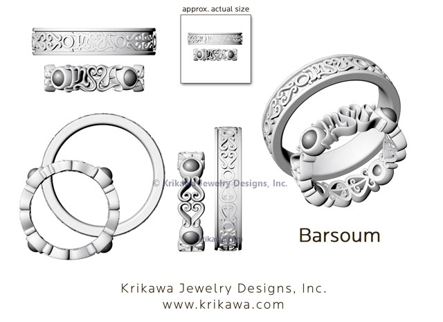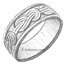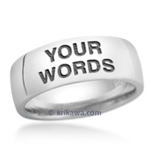 We'll create a unique custom wedding ring for you, using your pattern! Let us know what size and width ring you would like, and we'll email you a template to fill out. Once an order is placed, we'll take your camera ready artwork (black and white) and create a rendering for you to approve! This is a way to get any symbol, text or image onto a ring, completely custom and all your own. Contact us today for pricing with your symbols.