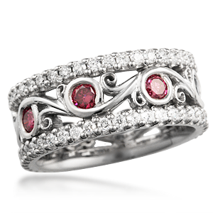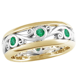 Diamond and Alexandrite Carved Curls Wedding Band with Rails