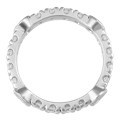 This diamond eternity wedding band is named for its medieval castle-like form. Instead of stone masonry, this castle is fortified by your favorite precious metal and diamonds! The bezel-set diamonds are embellished with millegraining, and the ones in-between are fishtail-set.