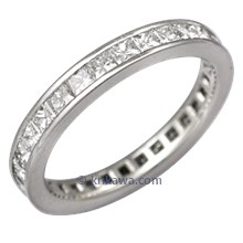 This narrow eternity band complements almost any engagement ring. 2mm princess ideal cut diamonds. Please contact Krikawa for pricing for other sizes and widths and carat total weights. The band is 3mm width at the palm.