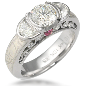 Elegant Mokume Carved Curls With Prong Set Center