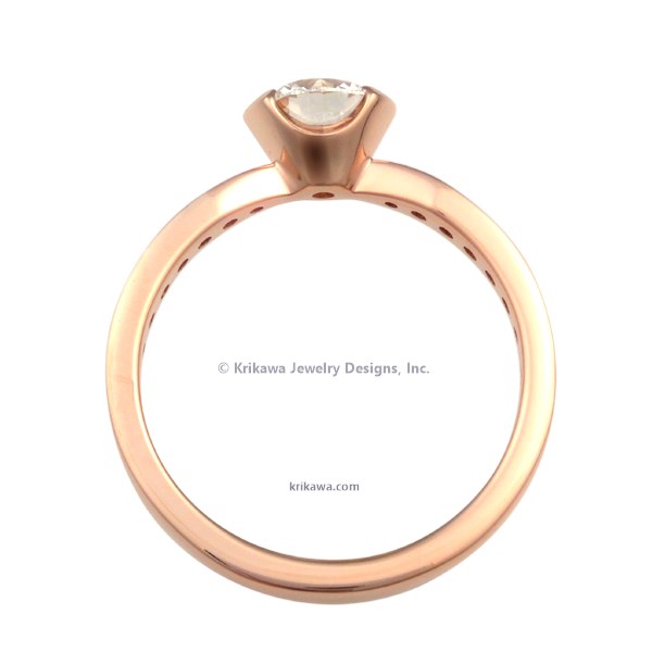Shown in all rose gold, with a 3/4 carat round diamond and blue sapphire accents.