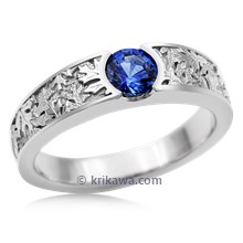Flush Oak Leaf Engagement Ring With Lab Emerald