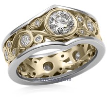 The Flush Rose Leaf Engagement Ring blends botanical subtlety with modern simplicity. Gracefully sculpted rose leaves arc across the band, leading the eye toward a flush-set center stone that rests in quiet harmony with the form. The silhouette is clean and organic, offering a low-profile design ideal for everyday elegance.