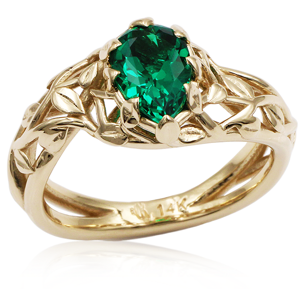 There’s a quiet power in this wreath. The Goddess Diamond Wreath Engagement Ring wraps the finger in a band of sculpted leaves, each one carefully placed to suggest motion, rhythm, and ceremony. Nestled at the center, your chosen stone rises like a crown within the circular embrace. Small accent diamonds are set into the leaves, offering flickers of light among the form.