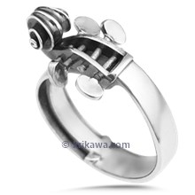 This electric guitar ring is perfect for the one that pulls your heart strings. The intricate ring has fret and peg details, with proportions true to the musical instrument.