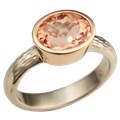 A creative engagement ring with a hammered finish and elevated bezel setting. The taller bezel mount supports your unique center stone by protecting the edges and displaying its radiance. Customize this ring with your choice of two metal tones! The band is 2.5mm width at the palm.Shown in 18k white gold and 14k rose gold with an oval Imperial Topaz.