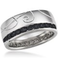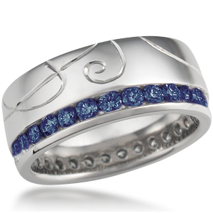 Hand Engraved Black Diamond Channel Side Wedding Band with Sapphires
