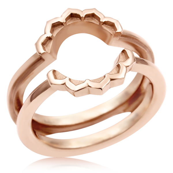 Light your heart on fire with this Heart Chakra Engagement Ring. Deeply meaningful, this ring will represent the connection of two souls at the heart level. What stones and colors light your fire? Custom-made to order to fit the Heart Charkra Enhancer. Imagine the possibilities with your choice of gemstones and metal tones.Shown in 14k rose gold with diamonds. Band and enhancer are priced separately.