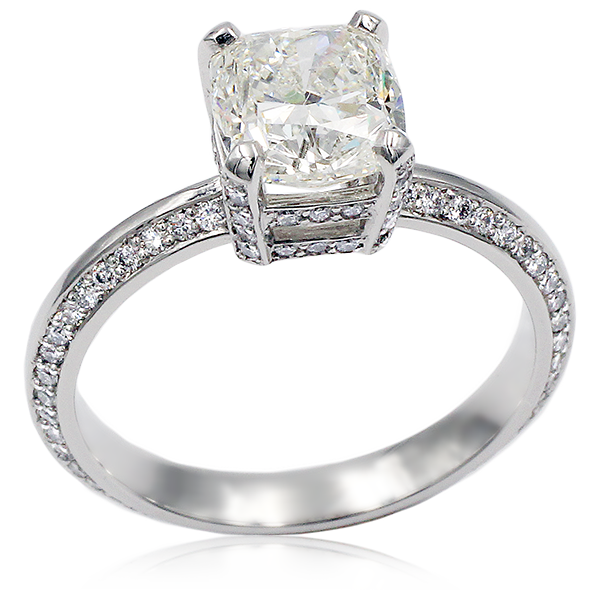 Shown in 3mm 14k rose gold with a 3.56ct diamond center and 0.47ctw diamond accents.