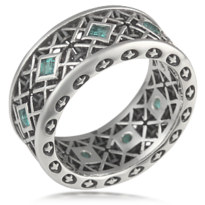 This intricate tetrahedron wedding ring was customized in platinum with 1.43ctw Princess Diamonds. The band measures 11mm in width.
