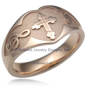 Large Cross and Musical Symbol Wedding Band