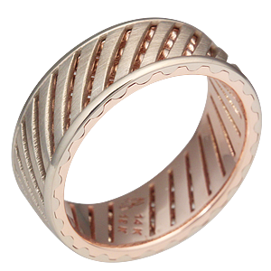 Two separate bands are perfectly fitted to weave through one another and become one permanent work of art. Handcrafted in your choice of two metals or one, the band features two opposite angled metal striping that creates a unique woven lattice pattern.- Choose your metal in the dropdown below for pricing and colorizing