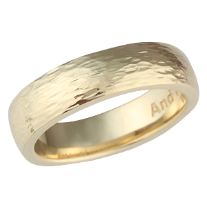 This handmade wedding ring has been parallel hammered for a contemporary look.